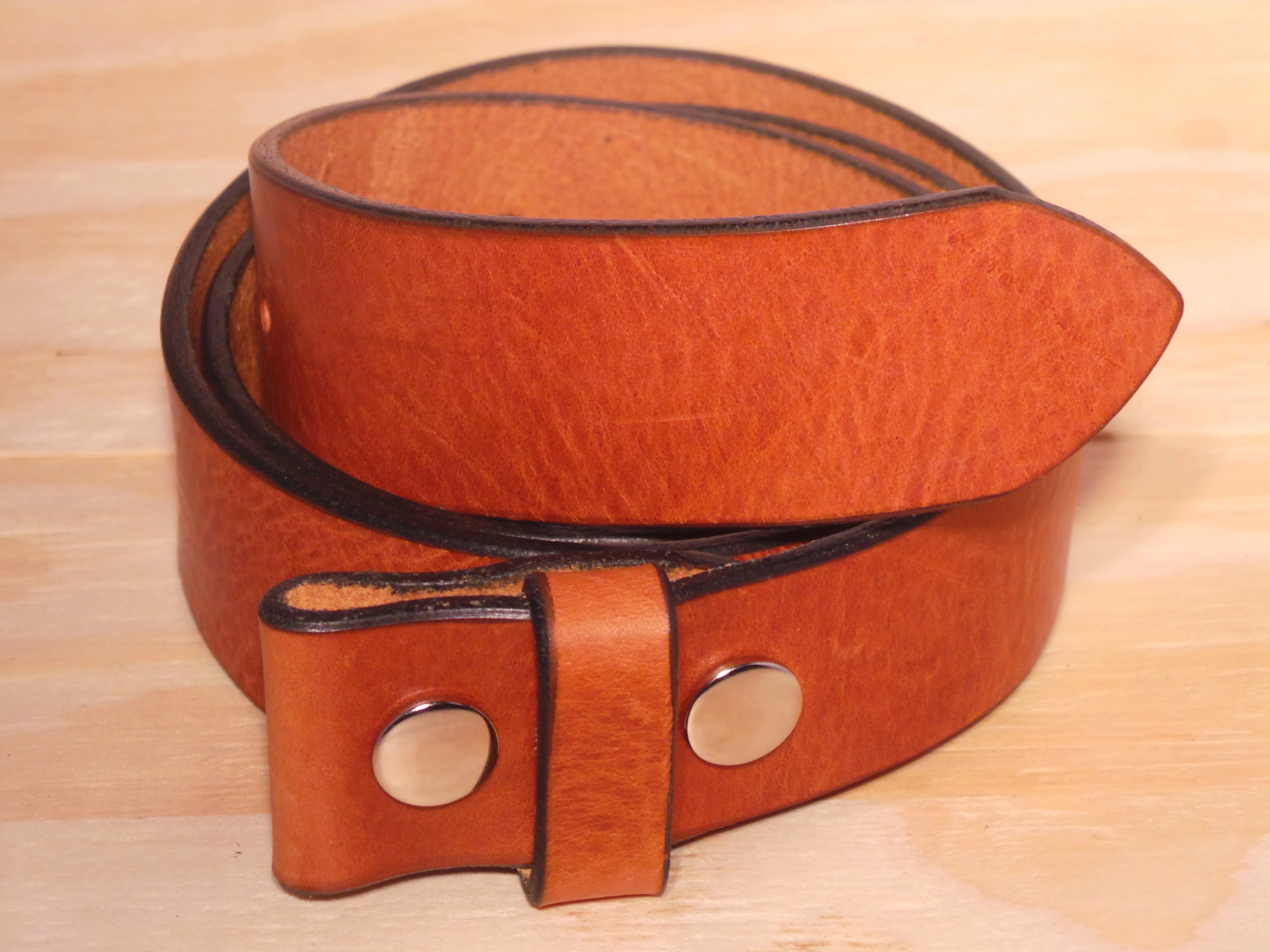 The 1 1/2 Inch Dark Tan Leather Belt Strap is edged in black. The belts are finished to the highest standards, and are crafted by hand at Buckle my Belt in the UK.