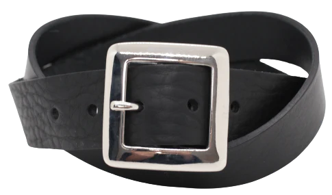 The black leather belt is edged in black. The belts are finished to an excellent standard, and are crafted by hand at Buckle my Belt in the UK.